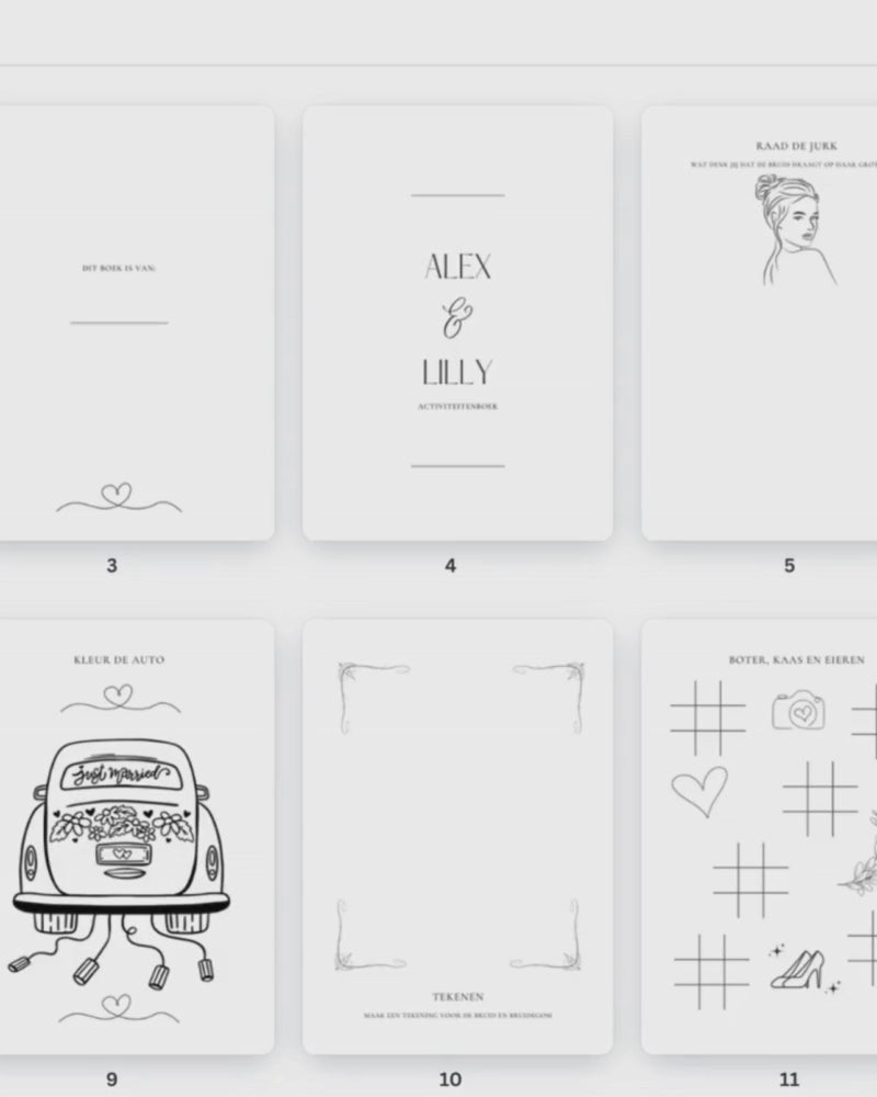 Maak jullie speciale dag nog onvergetelijker met ons Bruiloft Activiteitenboekje voor kinderen! Terwijl jullie heerlijk kunnen genieten van jullie bruiloft, zullen de kleintjes zich uren kunnen vermaken met dit boekje vol leuke en boeiende activiteiten.