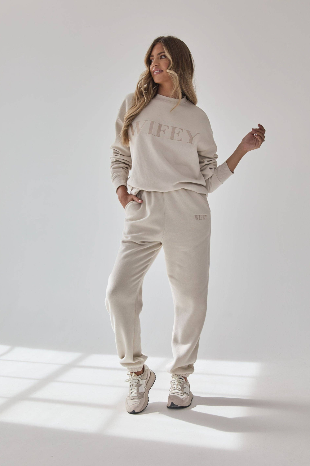 ✓Parelmoerachtig borduurdetail 'WIFEY' op de borst